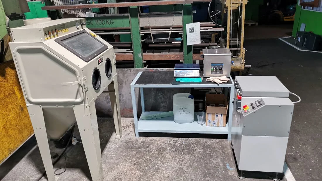 Do obsługi zleceń wykorzystywane są takie urządzenia jak piła taśmowa oraz gwintownica pneumatyczna. Ostateczny kształt przedmiotu obrabianego oraz jego powierzchnię nadają takie urządzenia jak: piaskarka kabinowa, gratownica odśrodkowa i myjka ultradźwiękowa. Wszystkie procesy zachodzące w naszej firmie mają swoje odzwierciedlenie w kartach technologicznych, co daje naszym klientom produkty o niezmiennie wysokiej jakości.
